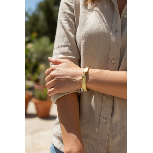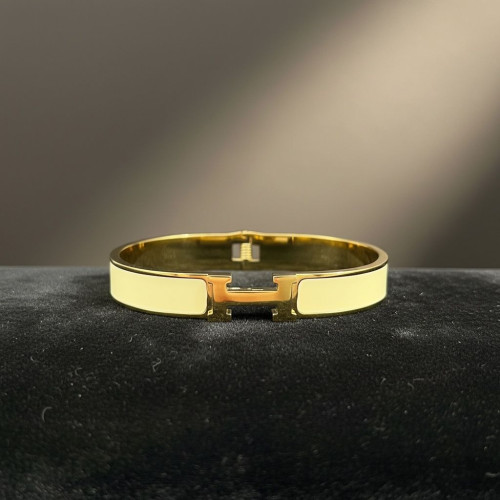 This sophisticated bangle features a soft cream enamel that pairs beautifully with the iconic "H" clasp. An essential accessory for a timeless, polished aesthetic.