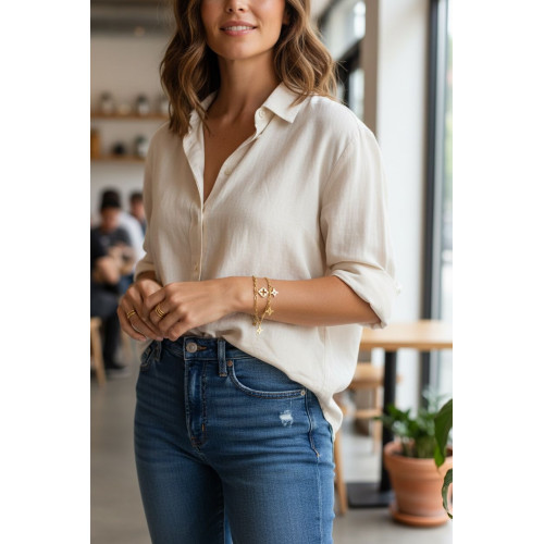 A playful yet luxurious piece featuring the iconic floral motifs on a delicate dual-chain design. Perfect for adding movement and a high-fashion touch to your wrist.