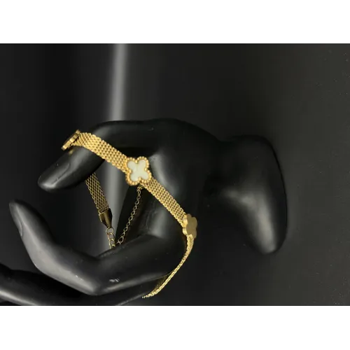 A stunning combination of a wide mesh band and the timeless mother-of-pearl clover motif. This piece offers a textured, high-end look for evening wear.