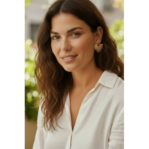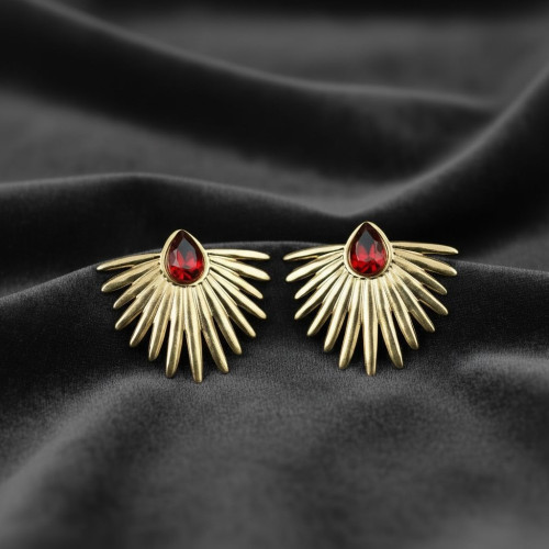 Make an unforgettable entrance with this fiery red teardrop stone framed by a dramatic sunburst. A bold piece designed for special occasions.