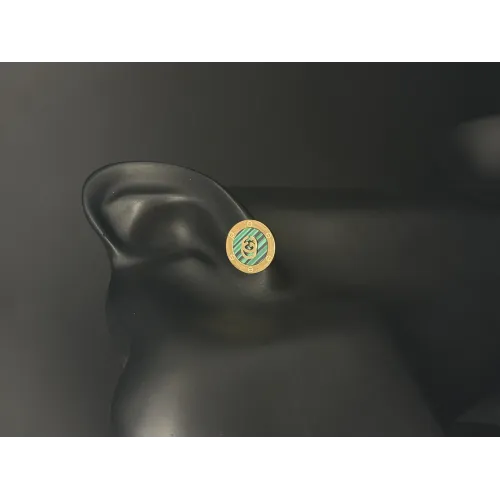 Infuse your look with rich color using these malachite-inspired striped studs. The contrast between the gold logo and deep green bands offers a vintage prestige.