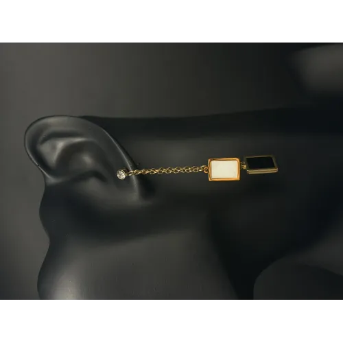This avant-garde drop earring uses a delicate chain to link a crystal post with dual-tone geometric bars. A stunning choice for asymmetrical styling.
