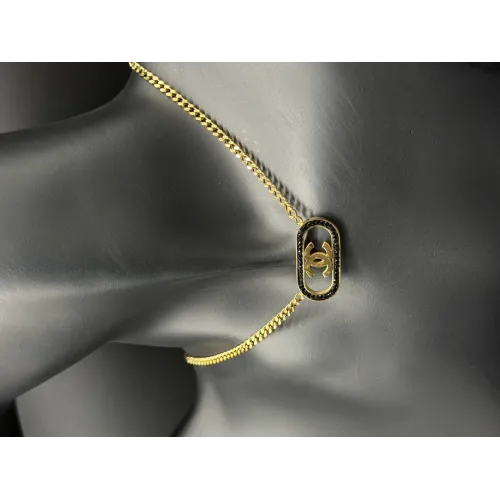 A dramatic take on the oval pendant, featuring black crystals that frame a golden CC logo. The perfect "little black dress" accessory for evening wear.
